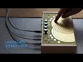 NOTE: Landscape shall not be held accountable for injury or worse when not using common sense with electricity. Do not use anything besides the included power supply or a 9v battery adaptor to power the Stereo Field. We recommend plugging into a mixer or modular synthesizer. Do not use with a PA system. The Stereo Field should only be played utilizing skin contact. Avoid introducing other objects or liquid to the surface as you may possibly damage the surface finish and/or the circuits.