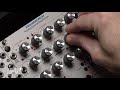 – The Center Freq and Bandwidth controls (and associated CV inputs and attenuverters) control the range of frequencies to be analyzed. The Bandwidth control allows the selection of narrow to wide pass bands on the left side of the pot and narrow to wide notches on the right side of the pot. The ability to sweep the frequency and modify the bandwidth under CV control opens up a wide range of sonic effects.